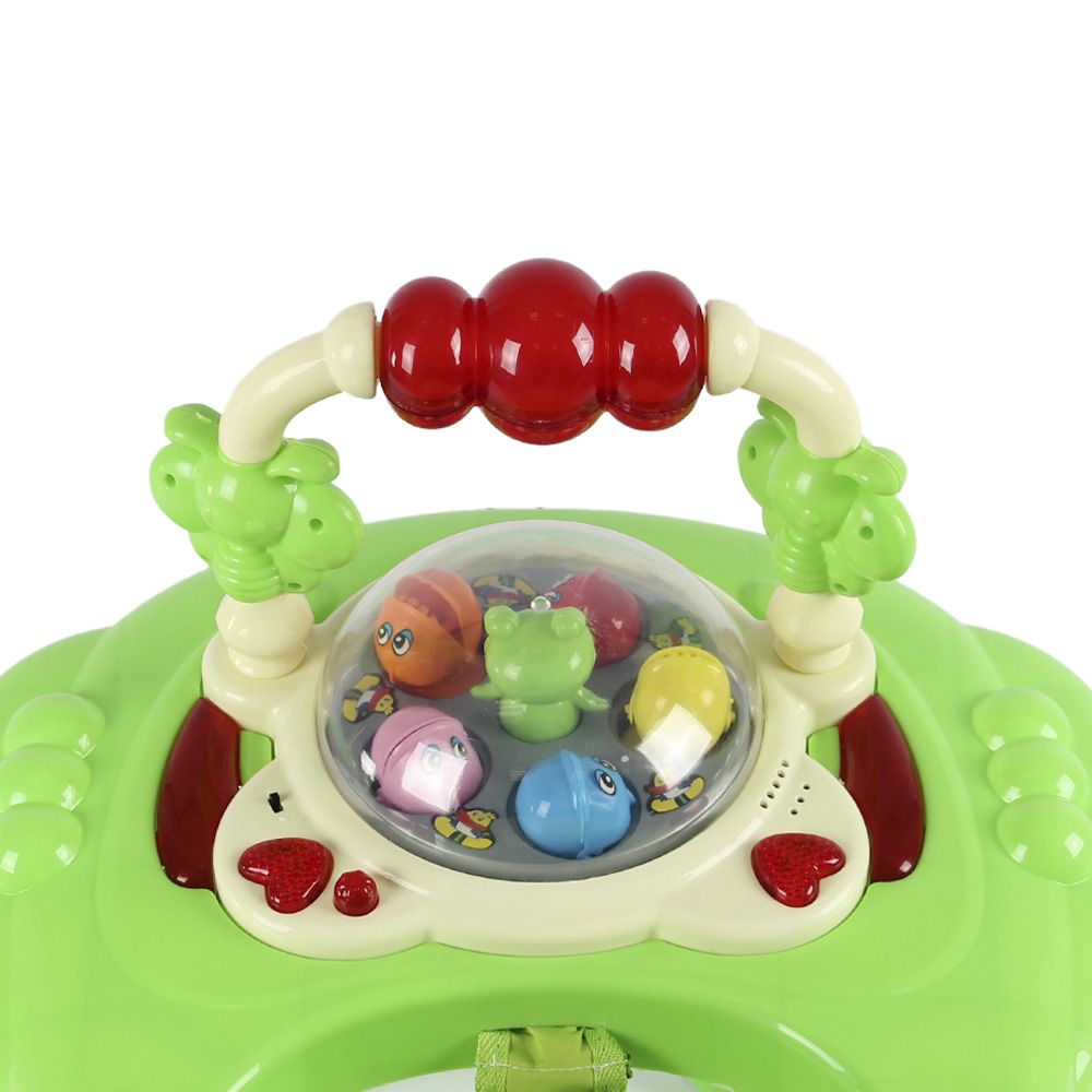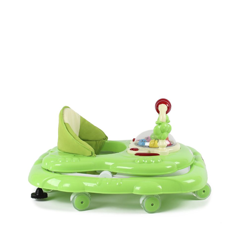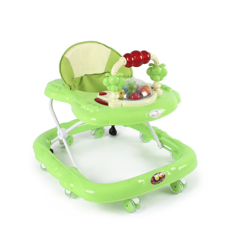 Колеса, размещенные по периметру базы, обеспечат плавный ход. Возможность поставить колеса на тормоз поможет маме приглядеть за малышом и не переживать, что он «укатится» без ее ведома. На ходунках имеются световые и музыкальные элементы, которые развлекут кроху. Несколько уровней по высоте позволят подобрать соответствующий комплекции ребенка.