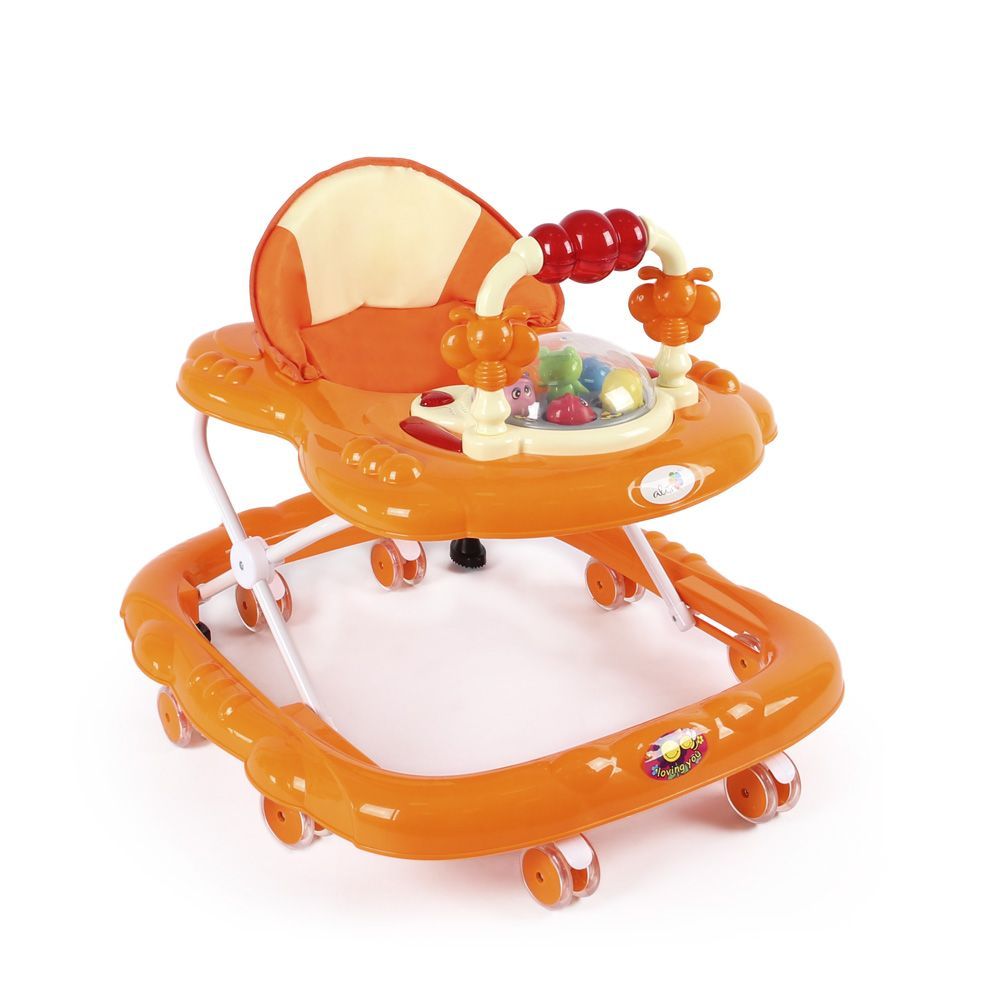 Колеса, размещенные по периметру базы, обеспечат плавный ход. Возможность поставить колеса на тормоз поможет маме приглядеть за малышом и не переживать, что он «укатится» без ее ведома. На ходунках имеются световые и музыкальные элементы, которые развлекут кроху. Несколько уровней по высоте позволят подобрать соответствующий комплекции ребенка.