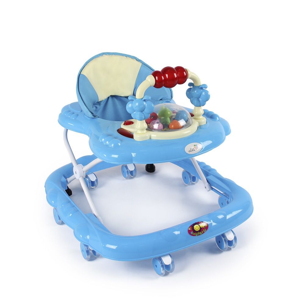Колеса, размещенные по периметру базы, обеспечат плавный ход. Возможность поставить колеса на тормоз поможет маме приглядеть за малышом и не переживать, что он «укатится» без ее ведома. На ходунках имеются световые и музыкальные элементы, которые развлекут кроху. Несколько уровней по высоте позволят подобрать соответствующий комплекции ребенка.