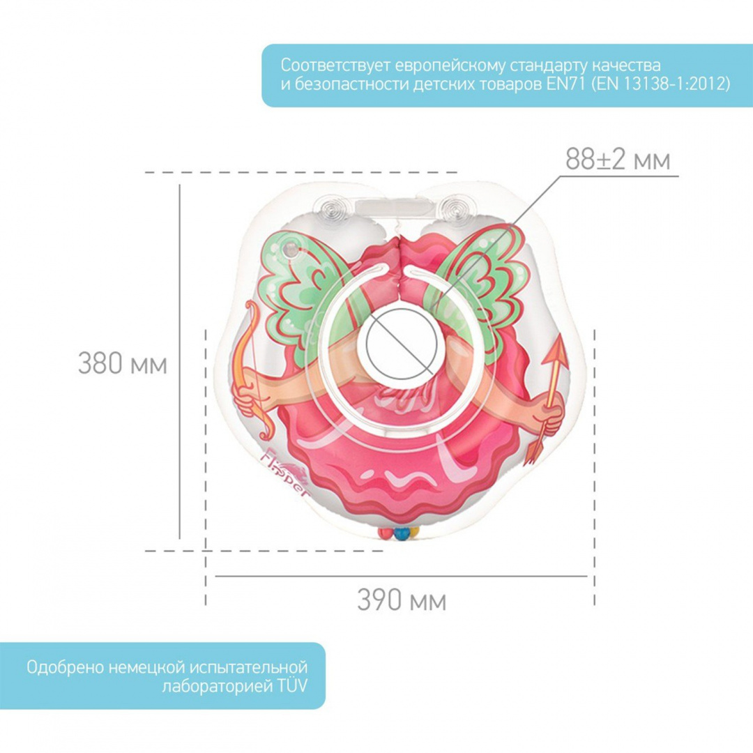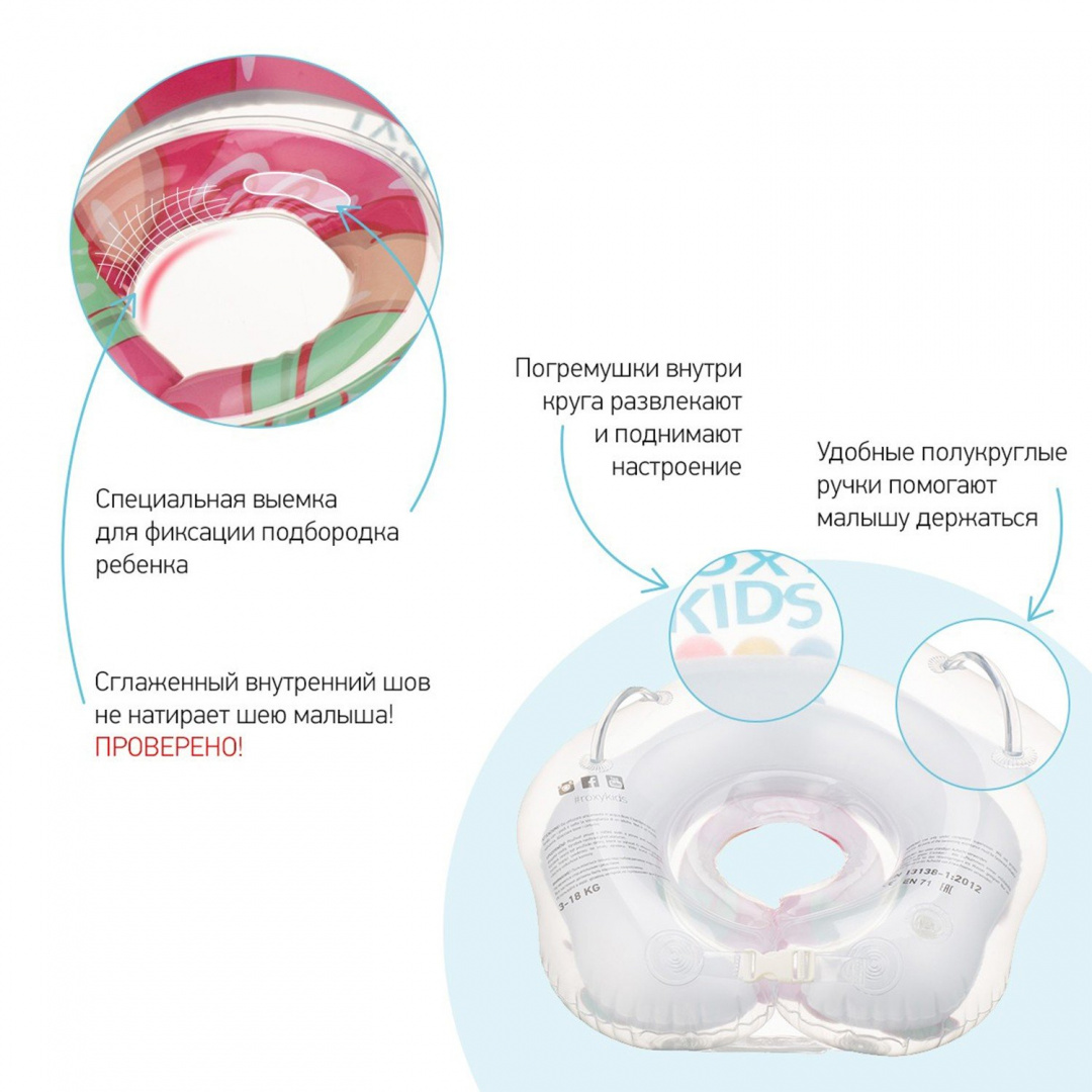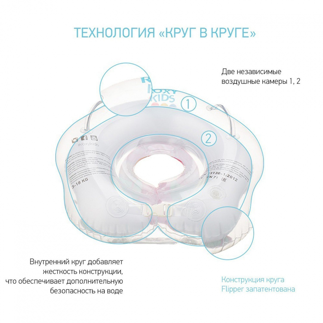 - соответствует европейским стандартам качества и безопасности детских товаров. Круги изготавливаются с учетом особенностей анатомии новорожденных и детей младшего возраста. Все модели кругов на шею Flipper с внутренней стороны имеют сглаженный шов, который не давит на шею малыша, в то же время плотно прилегая к ней, и не травмирует шейные позвонки. Купание в таком круге способствует физическому и эмоциональному развитию малышей, а также разгружает спины родителей.