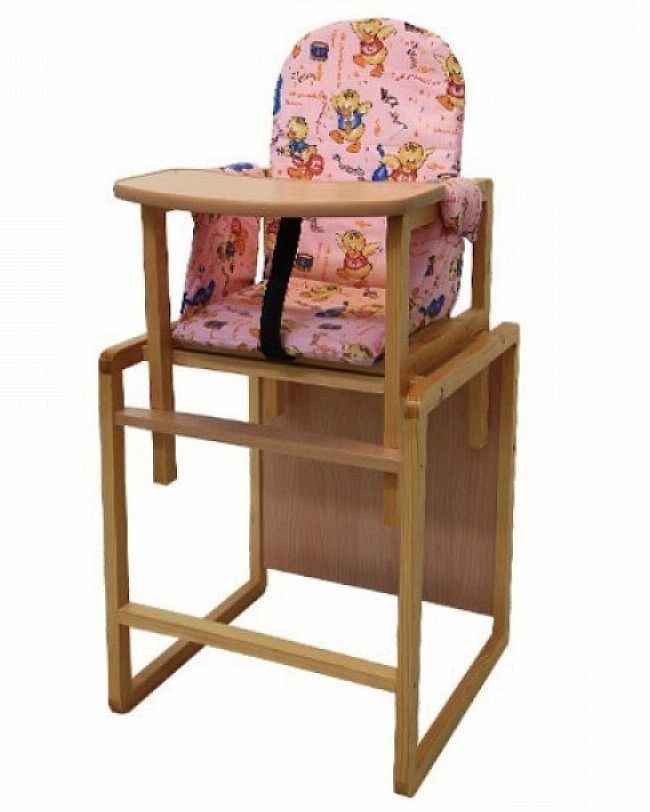 Ограничитель для ножек в виде ремня надежно крепится к столешнице и стульчику, он призван поддерживать малыша, в случае необходимости предотвращая падение. В разобранном виде, в качестве полноценного гарнитура из стола и стула модель занимает больше места. Однако это неудобство компенсируется тем, что ребенку будет комфортно кушать и играть.