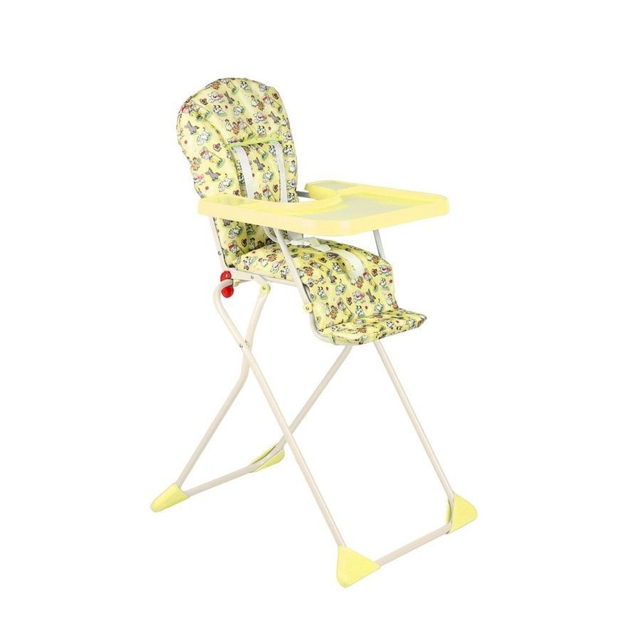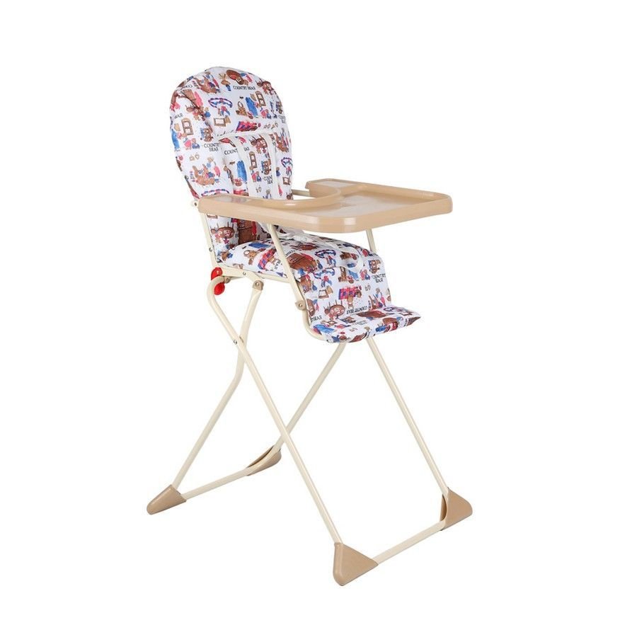 Основа конструкции изготовлена из трубок и разбирается по типу раскладушки. В разложенном виде стульчик фиксируют два пластиковых карабина. Четыре зажима надежно удерживают широкую столешницу и позволяют регулировать ее положение относительно стульчика. Спинка установлена в строго вертикальной позиции, поэтому стульчик подходит для деток, которые уверенно сидят.