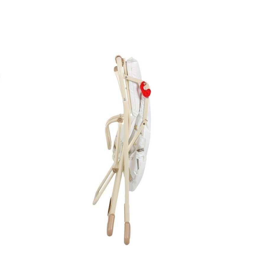 Объемный чехол, изготовленный из моющегося материала, имеет четко выраженные благодаря отстрочке боковые подушечки, которые помогают грудничку сидеть. Пластиковые уголки на ножках имеют закругленную поверхность, чтобы исключить повреждение напольного покрытия при передвижении. Ремни безопасности можно регулировать по длине.