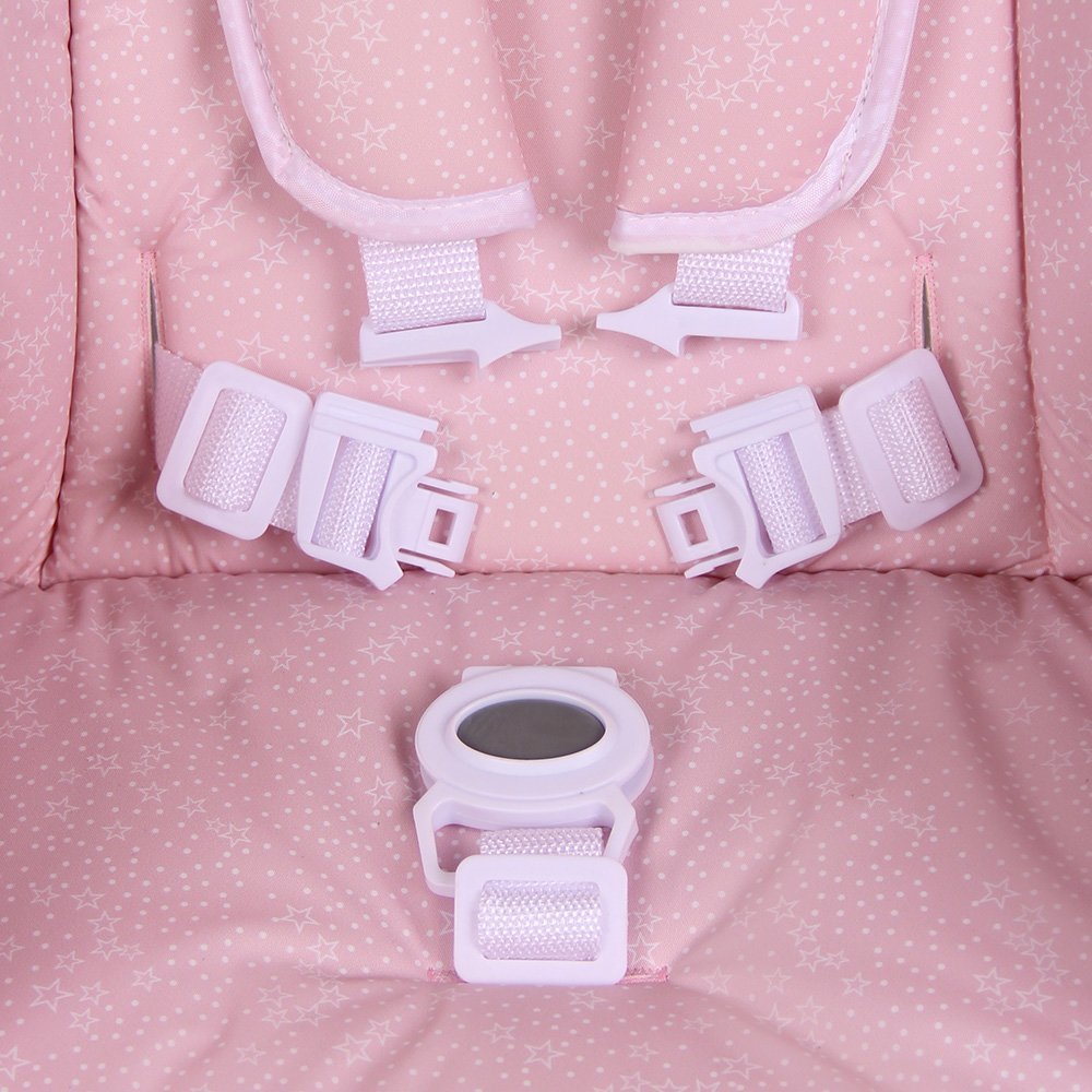 Регулируемые спинка (3 положения наклона), подножка (3 положения) и столик (3 уровня глубины) и 7 уровней высоты позволят выбрать для ребенка самое удобное положение.