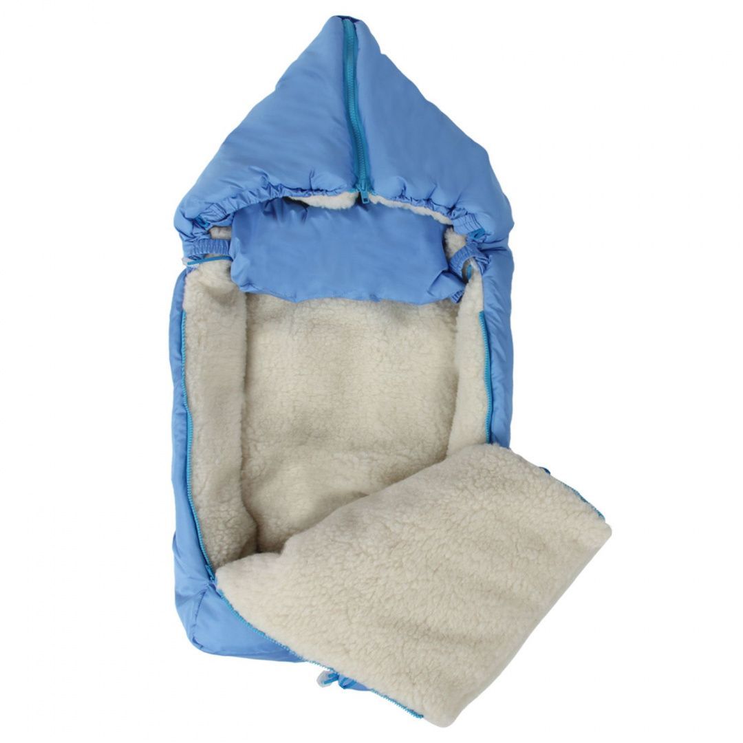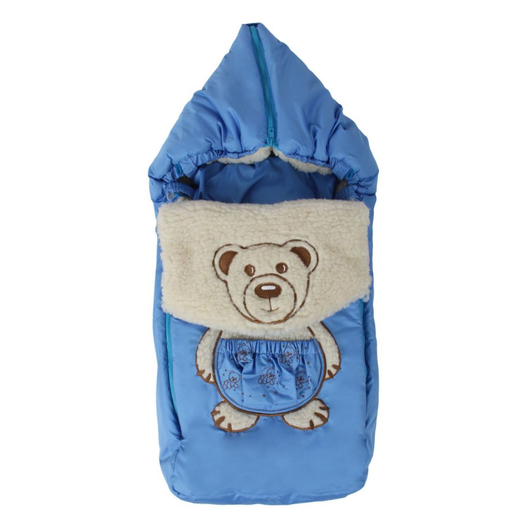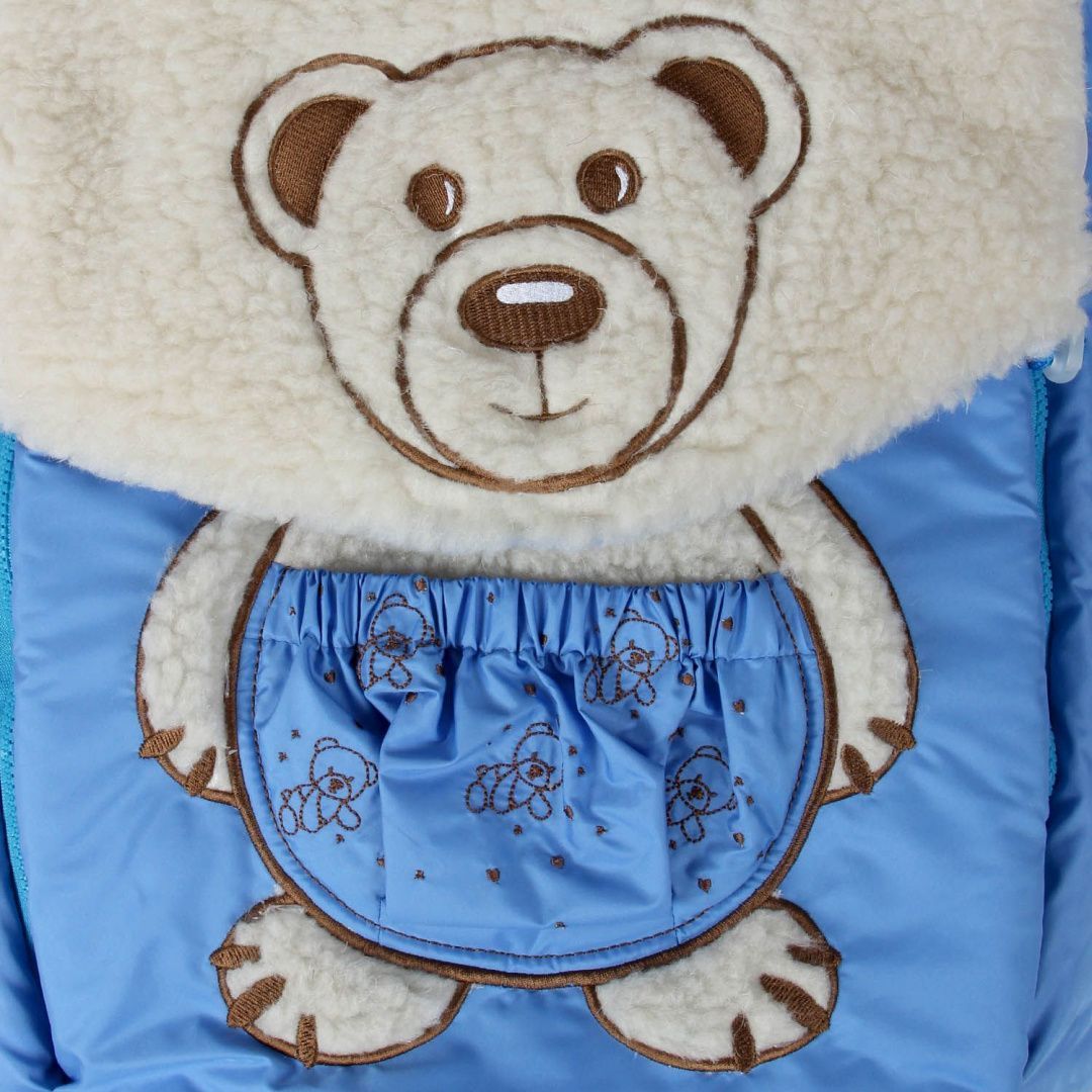 Очень удобный зимний конверт на боковых молниях с капюшоном, подушечкой на меху. Украшен дублирующей вышивкой.