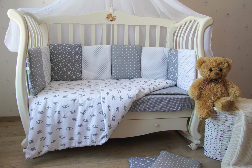 Данный комплект подходит для любых детских кроваток: круглой, овальной, прямоугольной (120х60 см)