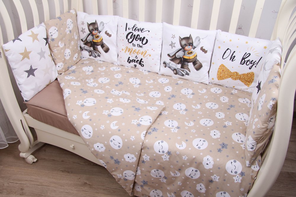 Данный комплект подходит для любых детских кроваток: круглой, овальной, прямоугольной (120х60 см)