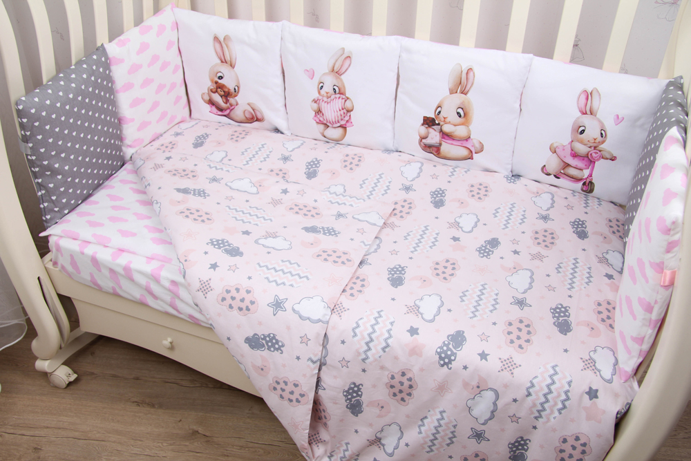 Данный комплект подходит для любых детских кроваток: круглой, овальной, прямоугольной (120х60 см)