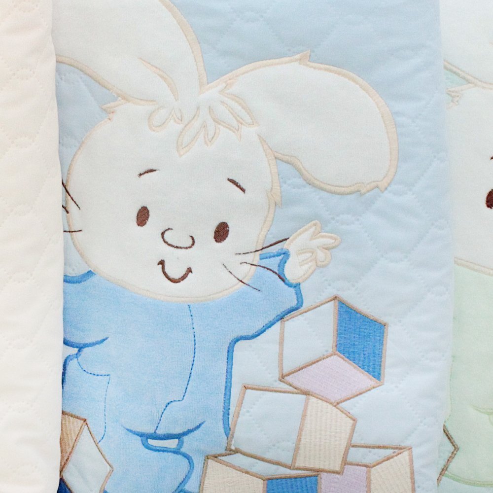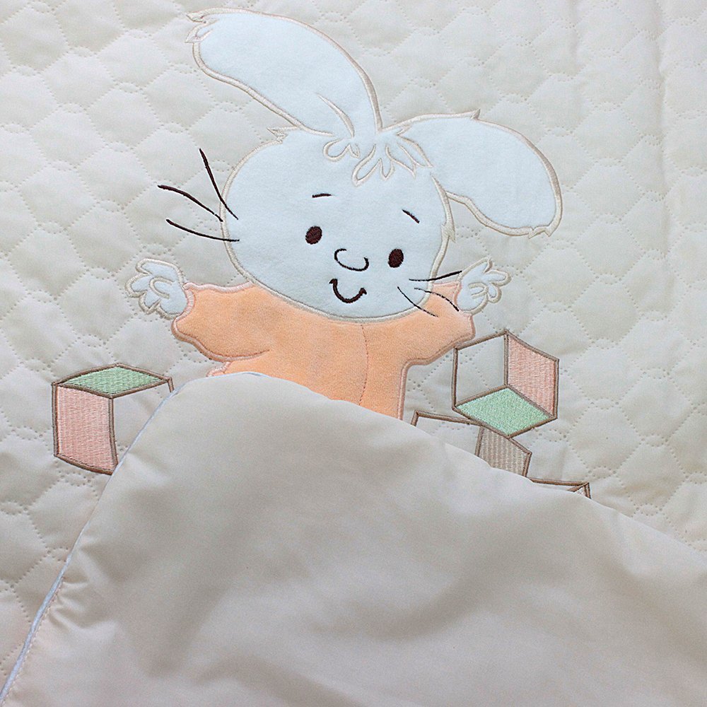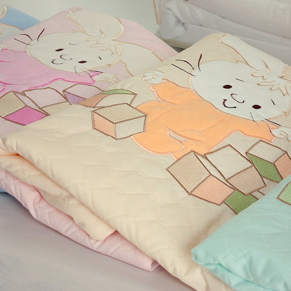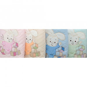 Одеяло-плед из ткани тиси (70% хлопок, 30% п/э) с вышивкой и гипоаллергенным наполнителем. Плед очень комфортен для малышей, им можно пользоваться и как оедялом. Легко стирать, гладить, забавная вышивка "Зайчик с кубиками" порадует и поднимет настроение, разнообразные расцветки на люой вкус. Можно использоать и дома, и взять на прогулку в коляску, идеально для весны и осени, а как одеяло в кроватку - на любое время года. Цвета: розовый, бежевый, голубой, ментоловый. Размер: 70х115