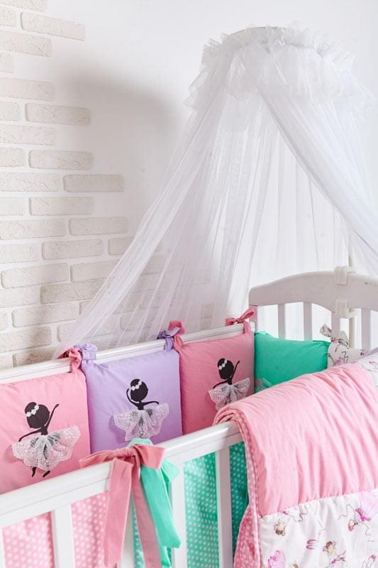 Она такая нежная, изящная, красивая, она балерина. Яркий, красивый комплект с универсальной простыней на резинке, подходит для овальной и прямоугольной кроватки. Бортики выполнены в виде отдельных подушечек на завязках. Стеганное одеяло - пэчворк удобно тем, что его можно использовать на выписку, для дома и в коляску. Съемные наволочки на бортах. Комплект выполнен из мягкого поплина. Экологически чистый и гипоаллергенный наполнитель холлофайбер, хорошо переносит стирку до 40 градусов, быстро сохнет.