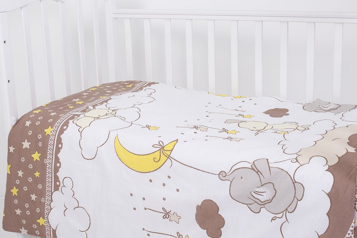 - Пододеяльник: 104 х 144 см из бязи с изображением зверят, 160 г/кв. м