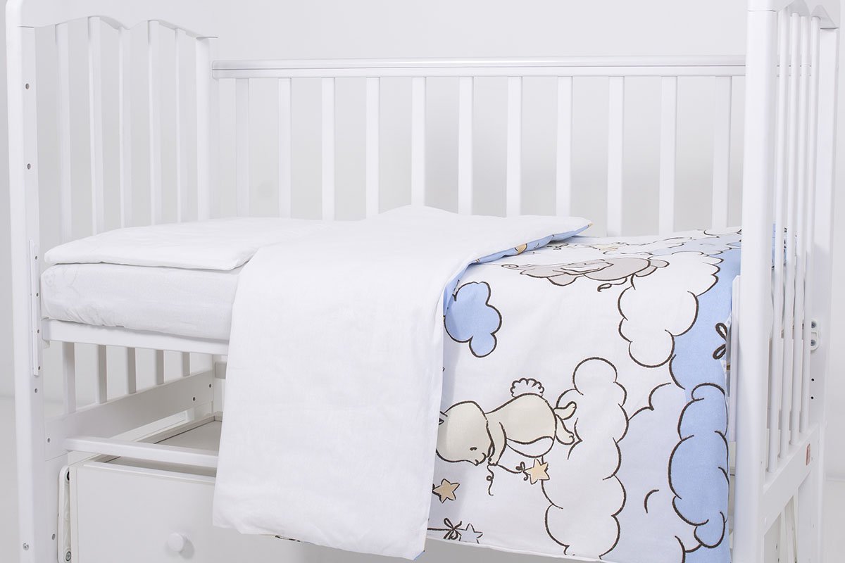 - Простынь на резинке: 120 х 60 см из бязи белого цвета, 160 г/кв. м