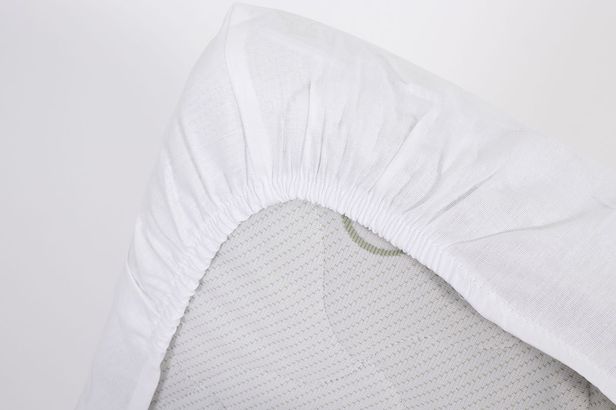 - Простынь на резинке: 120 х 60 см из бязи белого цвета, 160 г/кв. м