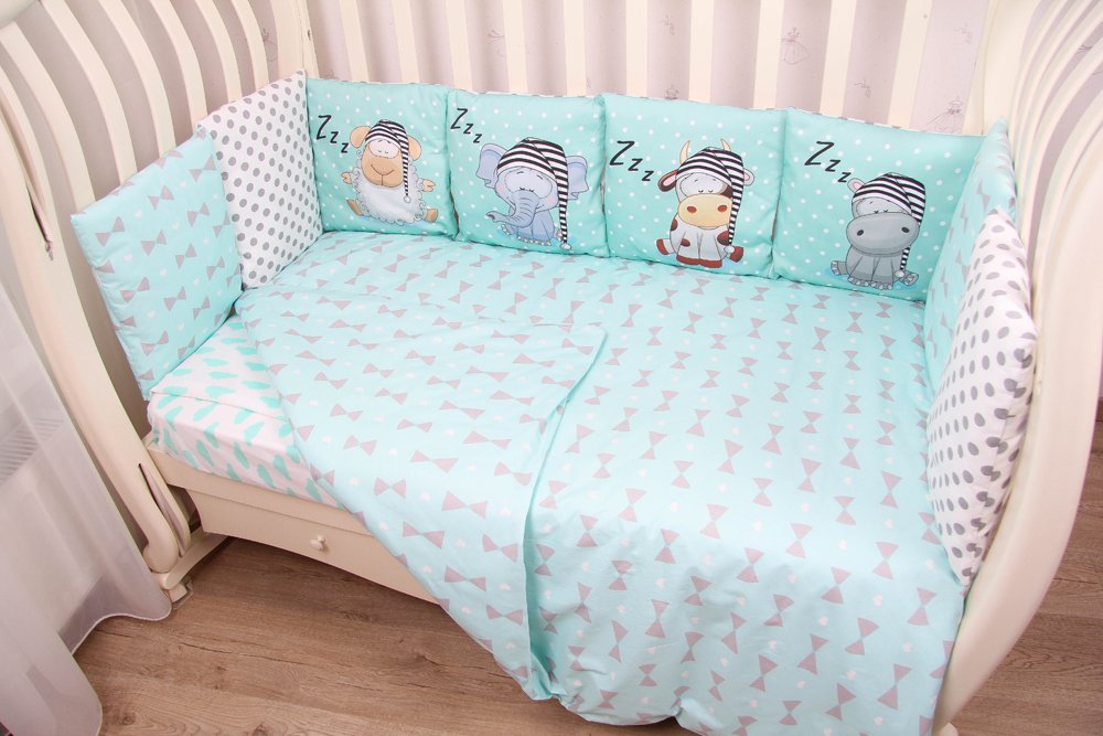 Данный комплект подходит для любых детских кроваток: круглой, овальной, прямоугольной (120х60 см)