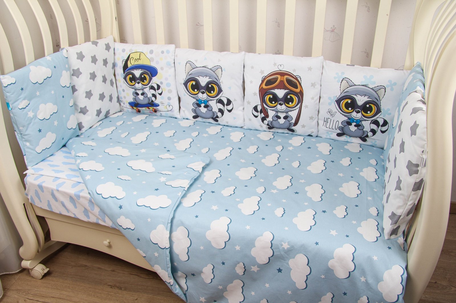 Данный комплект подходит для любых детских кроваток: круглой, овальной, прямоугольной (120х60 см)