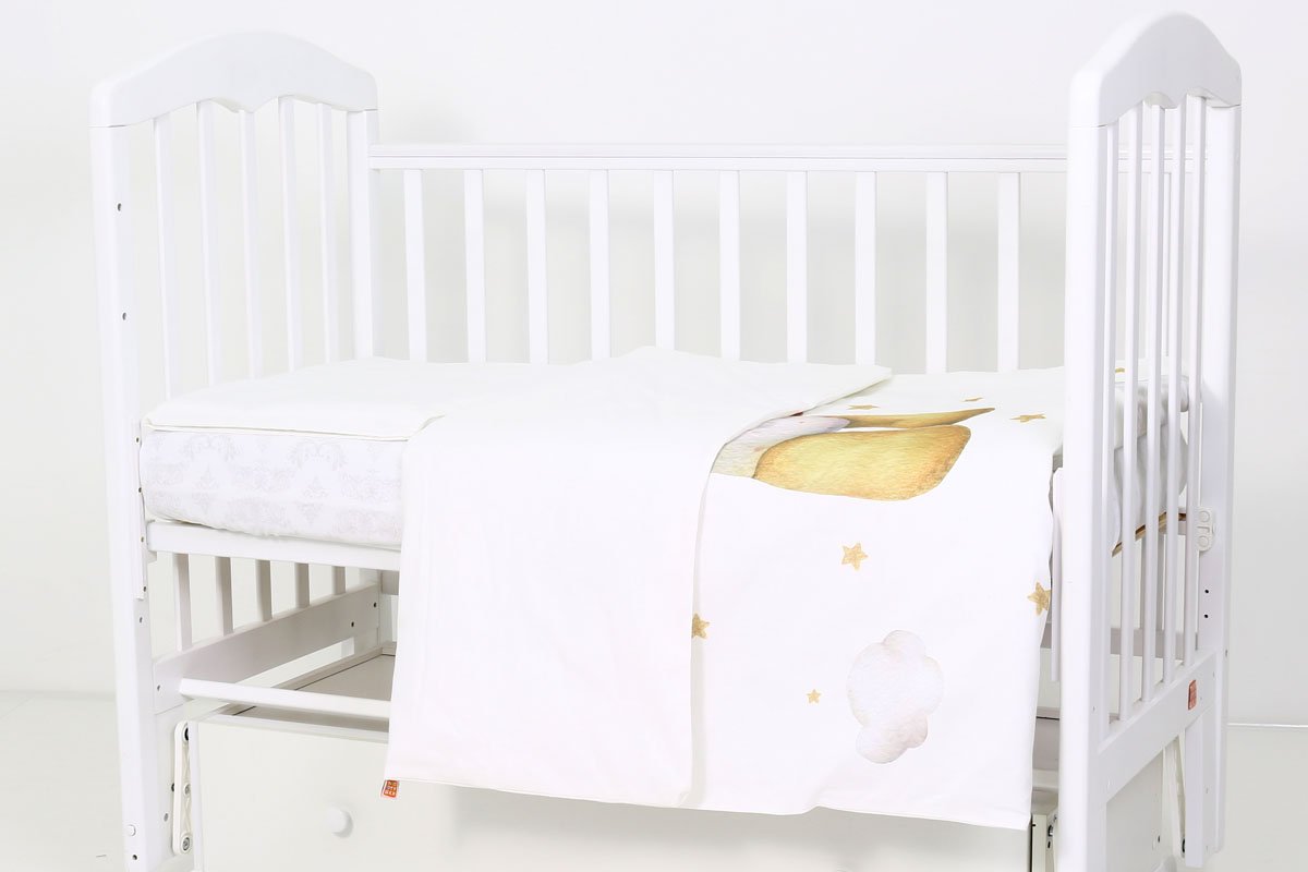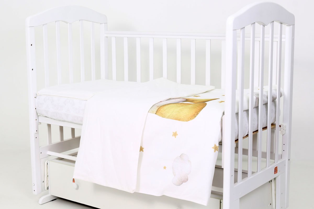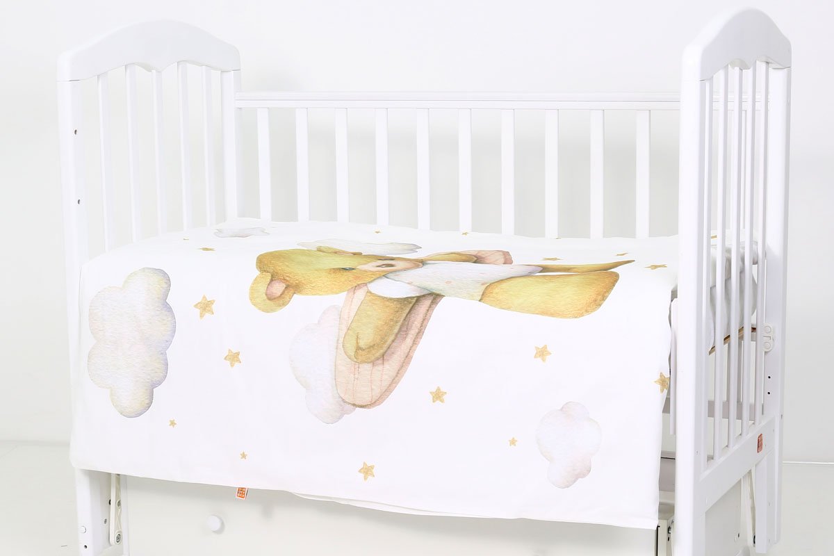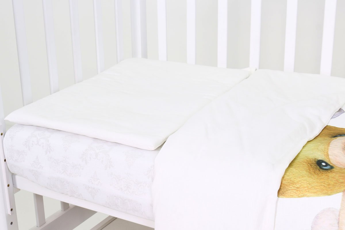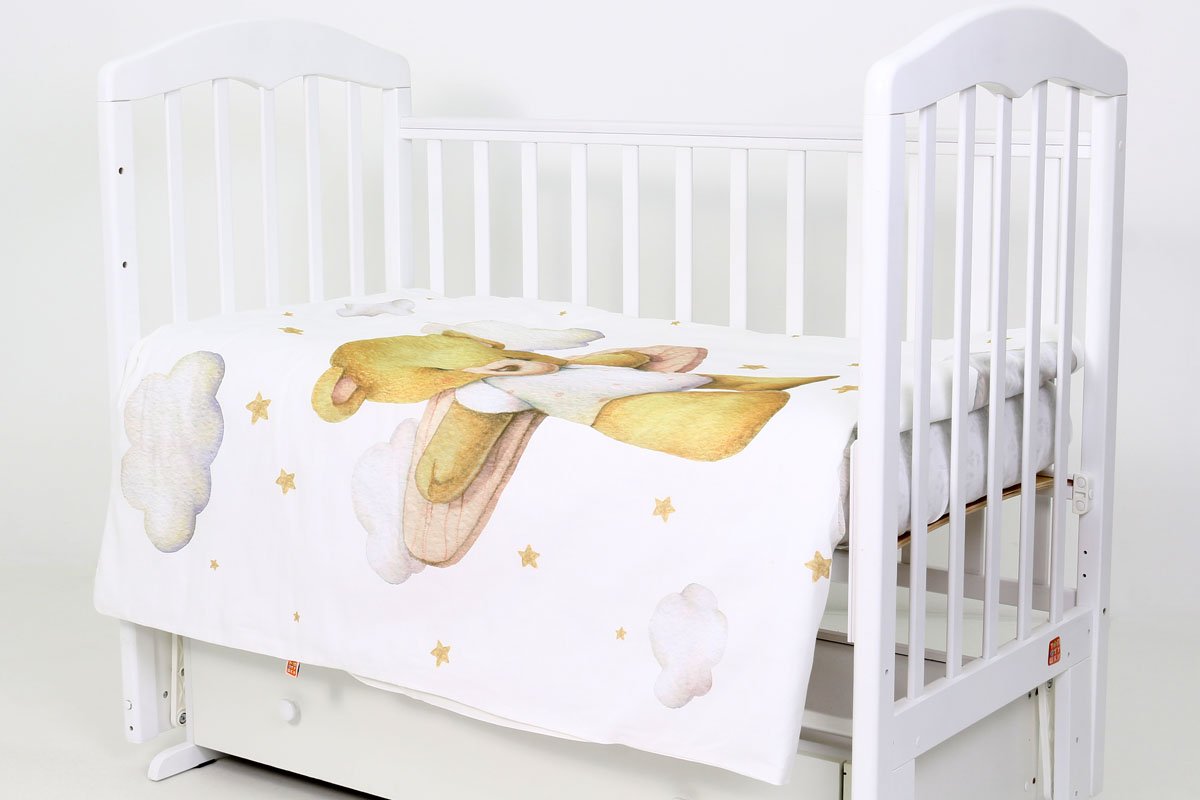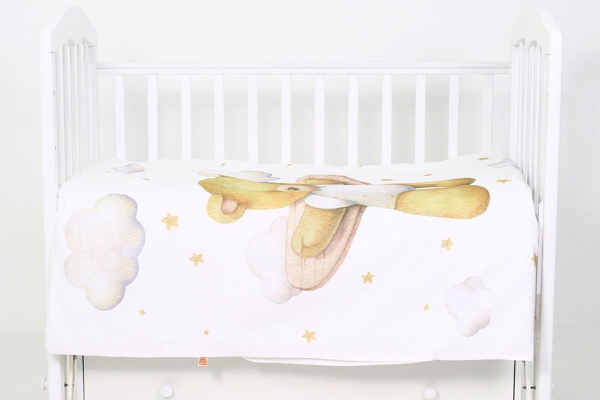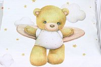 - Пододеяльник: 147 х 110 см из белой бязи с изображением мишки, 160 г/кв. м