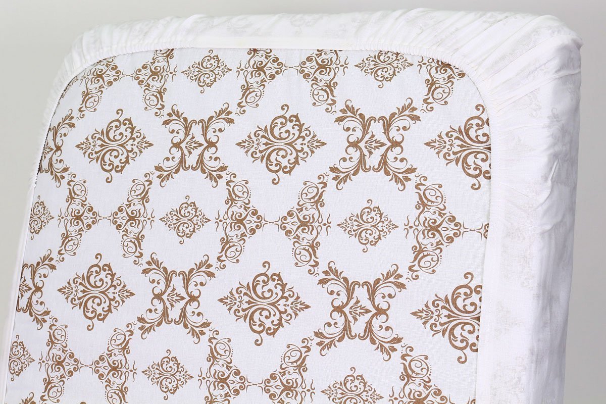 - Простынь на резинке: 120 х 60 см из бязи белого цвета, 160 г/кв. м
