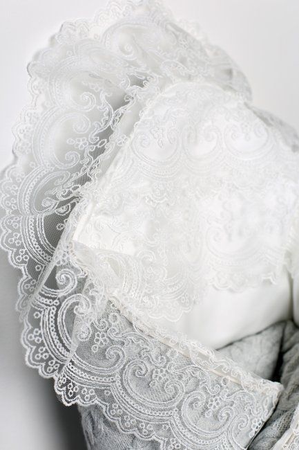 - у конверта съемный уголок, который украшен очаровательным пышным кружевом.