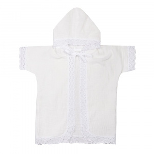 Вы всегда можете купить крестильную рубашку с капюшоном, рост 74, муслин, универсальную в интернет магазине Компасик.ру с доставкой по России или в наших шоу-румах по адресу: