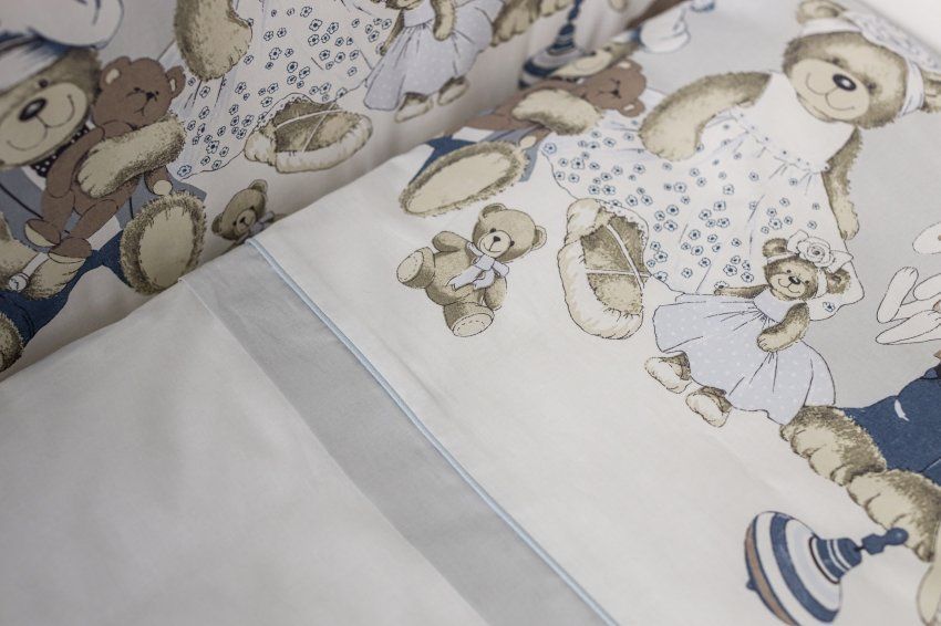 Серия "Мишкины игрушки" - это продолжение наших сюжетов про плюшевых медведей: "Морячки" и "В ожидании праздника", которые так полюбились покупателям. В новом дизайне нарядные мишутки и их подружки веселятся на детском празднике. Спокойная расцветка и приятный глазу рисунок будут долго радовать и малыша и родителей.