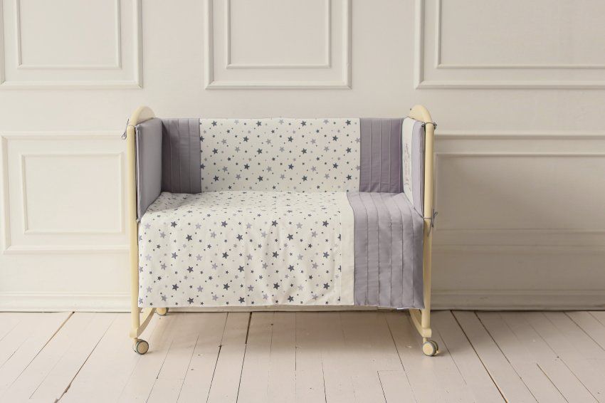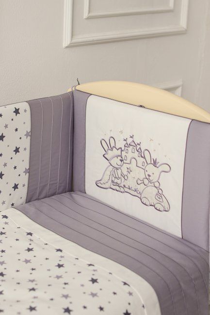 Изделие традиционно украшено тонкими кантами, отделочными строчками и изящной вышивкой. Чехлы бортиков съемные на молниях, что значительно упрощает уход за ними.