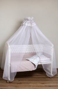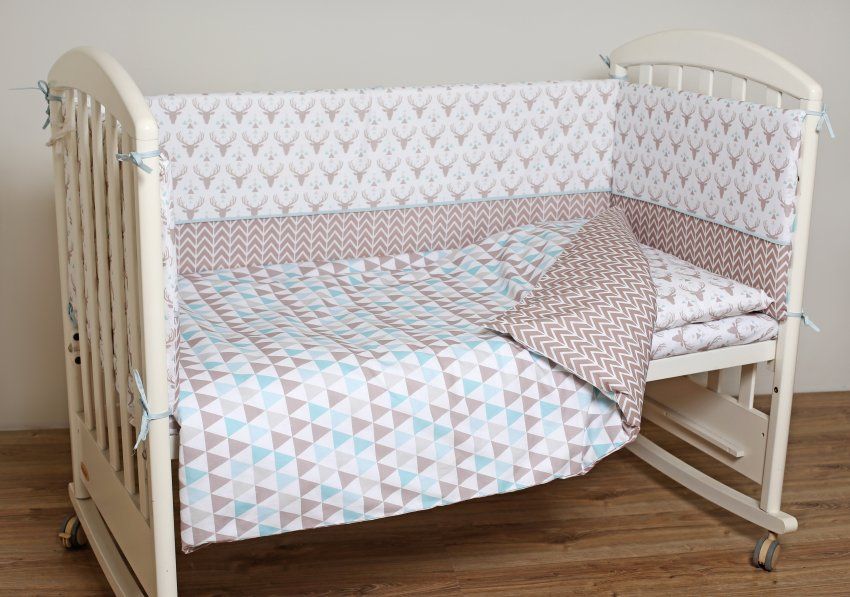Особенностью данного коплекта является двусторонний пододеяльник и необычный бортик , состоящий из 5 полубортиков и 2-ух забавных подушек -игрушек . Все это можно комбинировать в кроватке малыша по Вашему желанию и настроению.