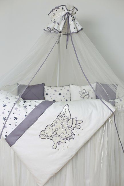 Воздушное изделие выполненное из нежного фатина с сатиновой юбочкой из тончайшего сатинового полотна европейского качества, в расцветке коллекции "Зведочет", что делают балдахин очень нарядным и уютным.